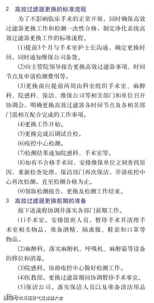 更換手術(shù)室凈化系統(tǒng)高效過(guò)濾器前1周,再次與各相關(guān)部門進(jìn)行溝通確認(rèn)更換時(shí)間,手術(shù)室在更換開始前能否按時(shí)暫停手術(shù),安裝和保潔人員落實(shí)情況、材料(酒精、抹布以及隔離服等)準(zhǔn)備情況等。安排維護(hù)人員對(duì)手術(shù)室凈化系統(tǒng)的新風(fēng)機(jī)組、循環(huán)機(jī)組表冷器進(jìn)行清洗(必要時(shí)添加84消毒液進(jìn)行消毒)、機(jī)內(nèi)保潔以及對(duì)新風(fēng)口進(jìn)行清洗。下面由空氣好凈化工程技術(shù)團(tuán)隊(duì)建議更換手術(shù)室凈化系統(tǒng)高效過(guò)濾器注意事項(xiàng)如下。